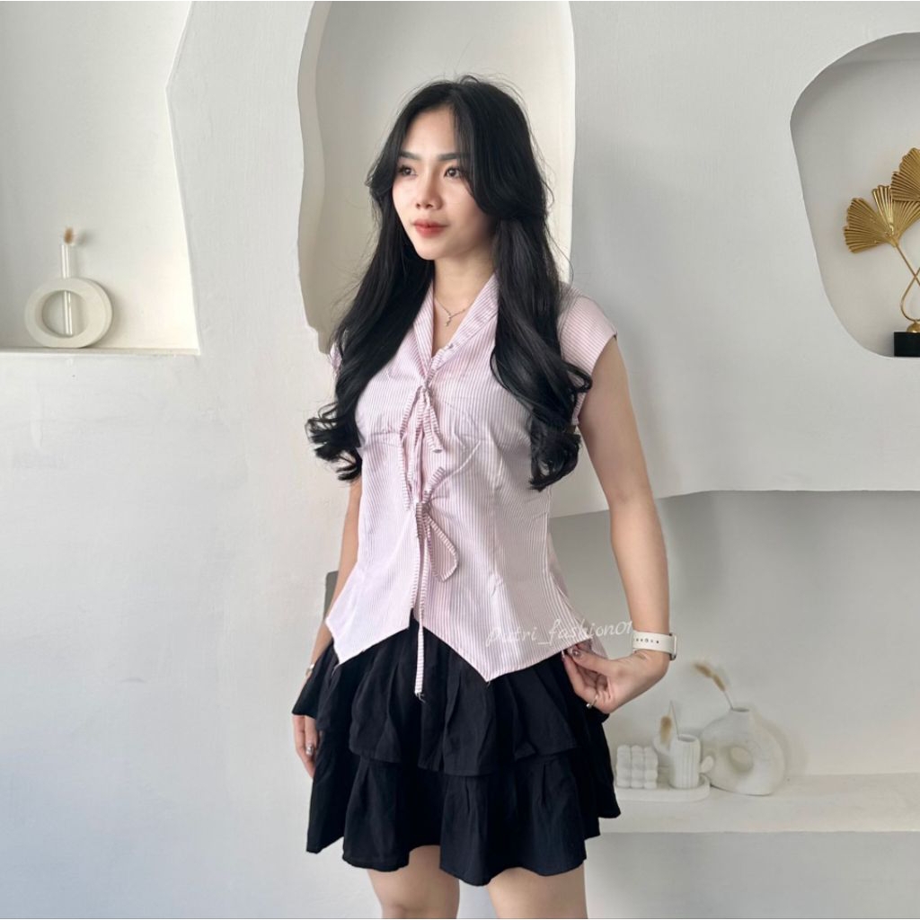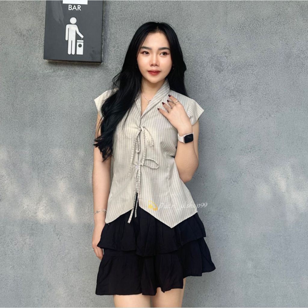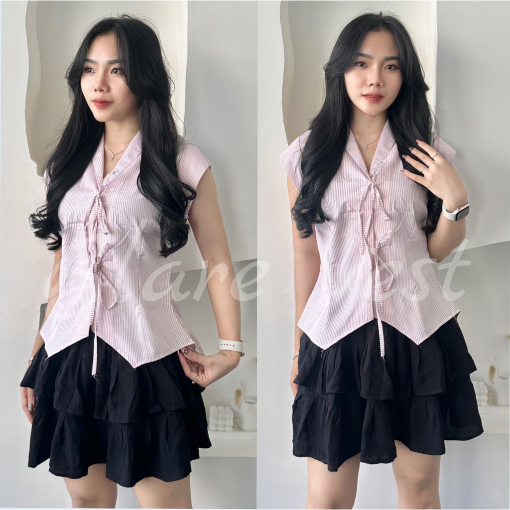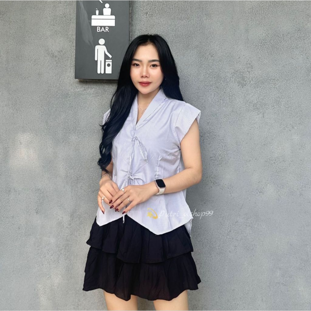 Blaire Kemeja Vest | Atasan Wanita Stripe by putri_olshop99