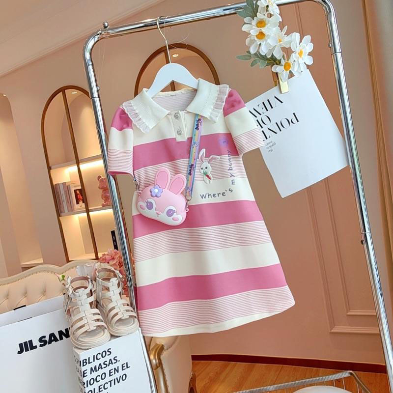 PRINCESS KESLI 2-11 Tahun Dress Rabbit Salur Gaun Baju Anak Perempuan Korea Style Stellalou Manis Santai Kids