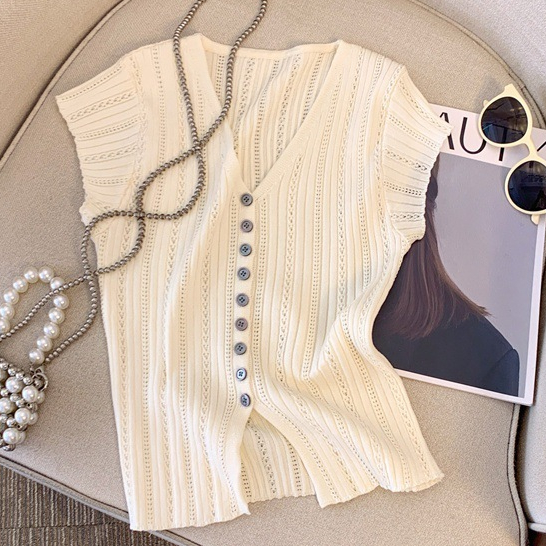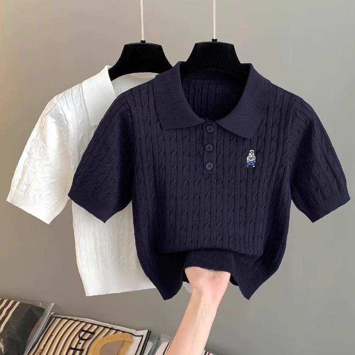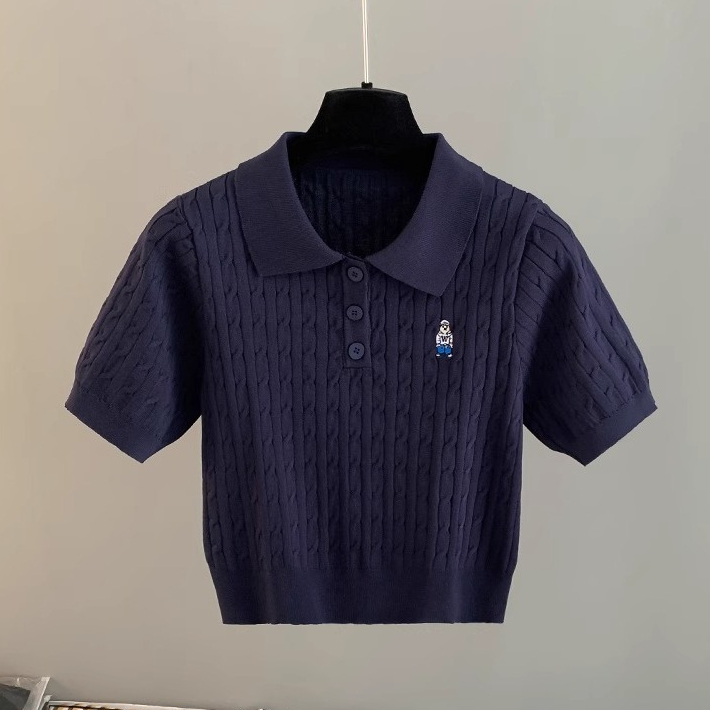 【boll.id】Kaos Rajut Wanita/Kaos Rajut Wanita Lengan Pendek/Polo Rajut Shirt Wanita/Crop Kaos Korean Style/Outfit Cewek Kekinian
