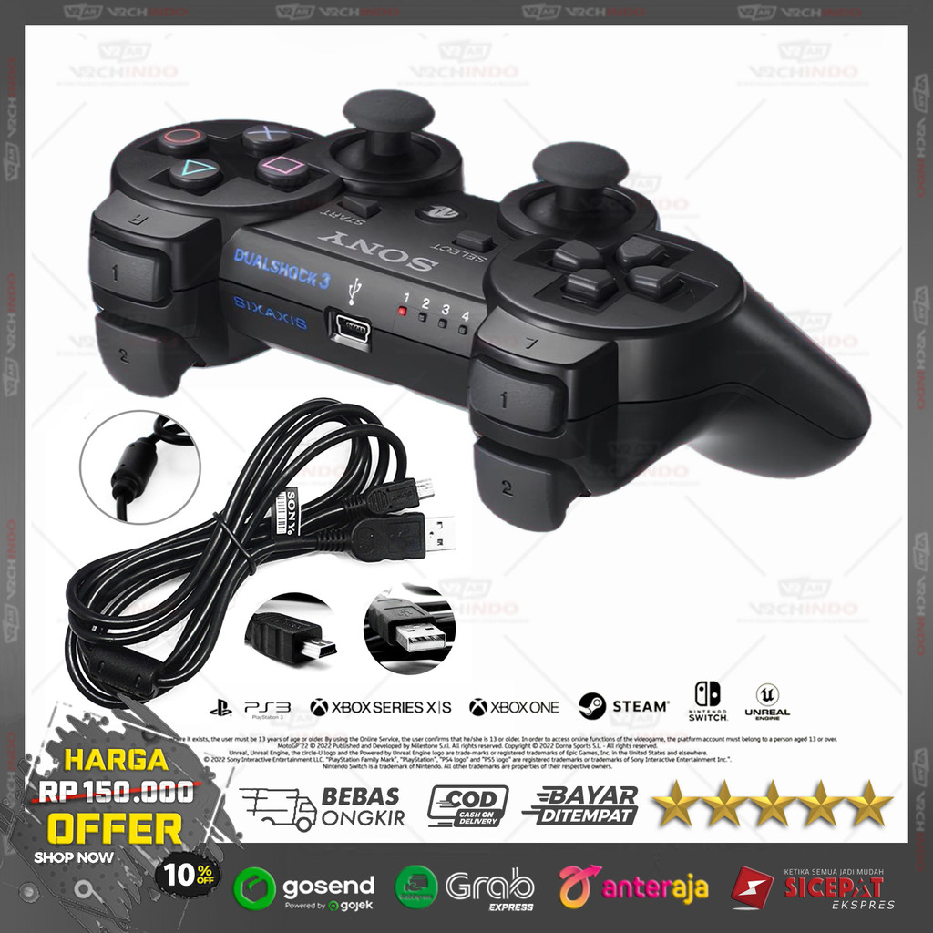 Gamepad Wireless PS3 Original Premium + USB Charger | Stik PS3