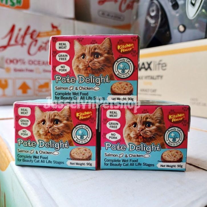 Kitchen Flavor Cat Pate Delight Salmon Chicken wet food cat kucing 90gr terlaris, termurah, dan