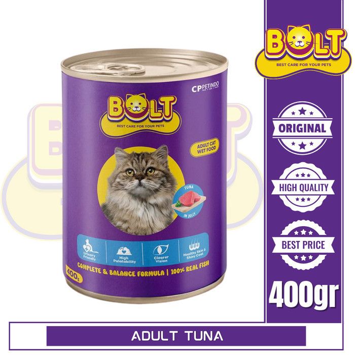Bolt cat kaleng 400gr makanan basah kucing terlaris, termurah, dan berkualitas.
