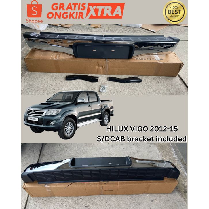 BUMPER BEMPER PALANG BELAKANG HILUX VIGO 2012 2013 2014 2015 DCAB SCAB BARU KROM HITAM DENGAN BRACKET OEM IMPORT