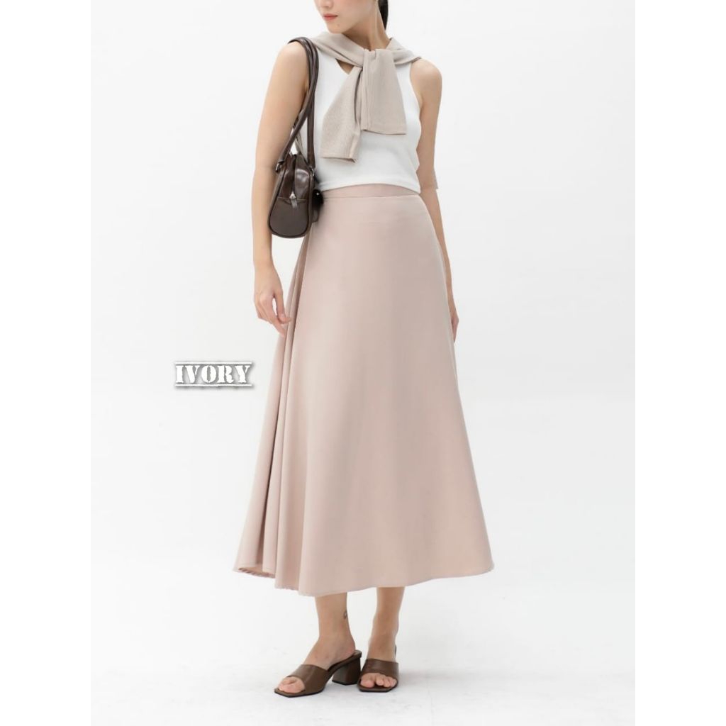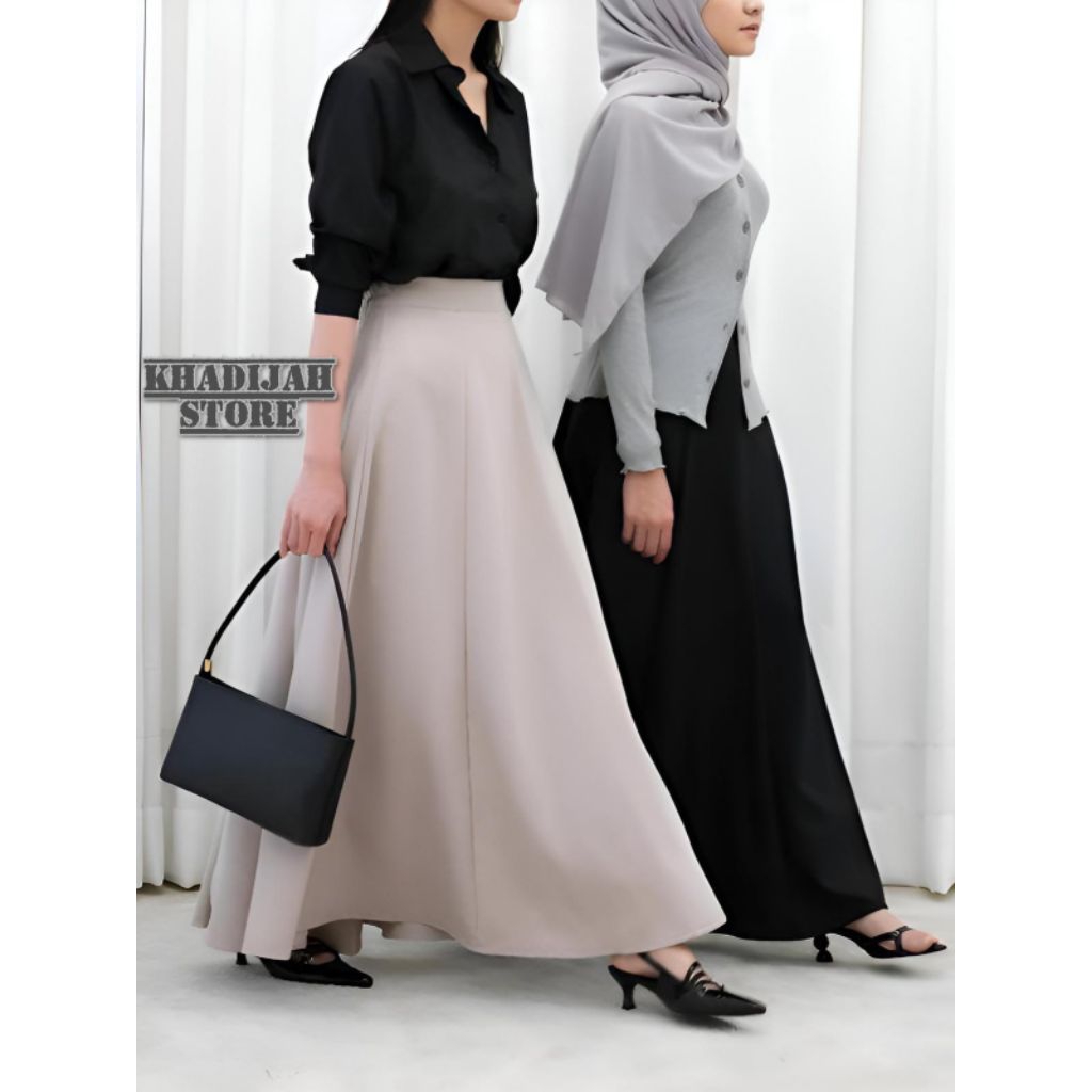 Audy Skirt | Korean Loose Maxi Skirt | Rok Flare Wanita | Rok Basic Polos | Rok Panjang Wanita Scuba Premium