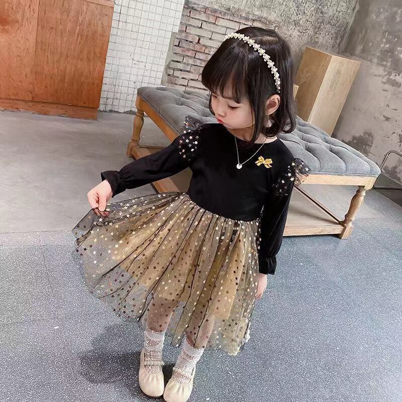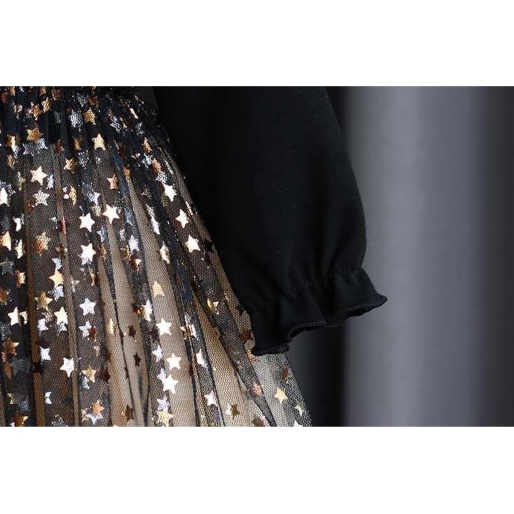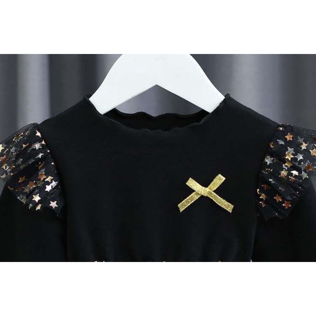 PRINCESS KESLI 0-9 Tahun Dress Anak Pesta Black Mamba Star Gold Long Perempuan Gaun Hitam Rok Tile Lengan Panjang kids