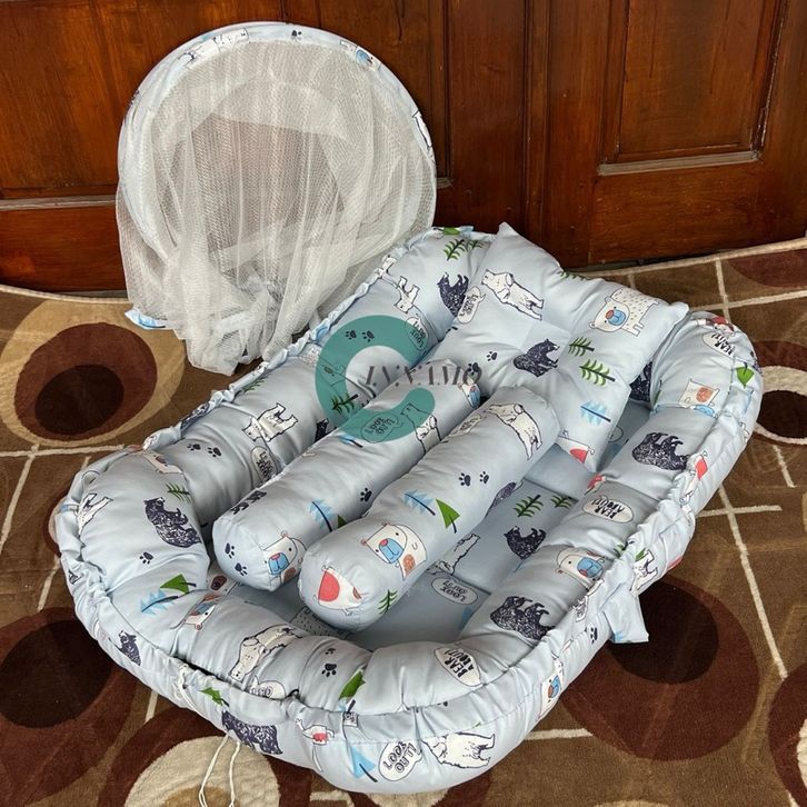 𝑪𝒊𝒏𝒏𝒂𝒎𝒐 - Baby Nest Set Kasur Bayi Kelambu Serut Set Bantal Guling Bayi