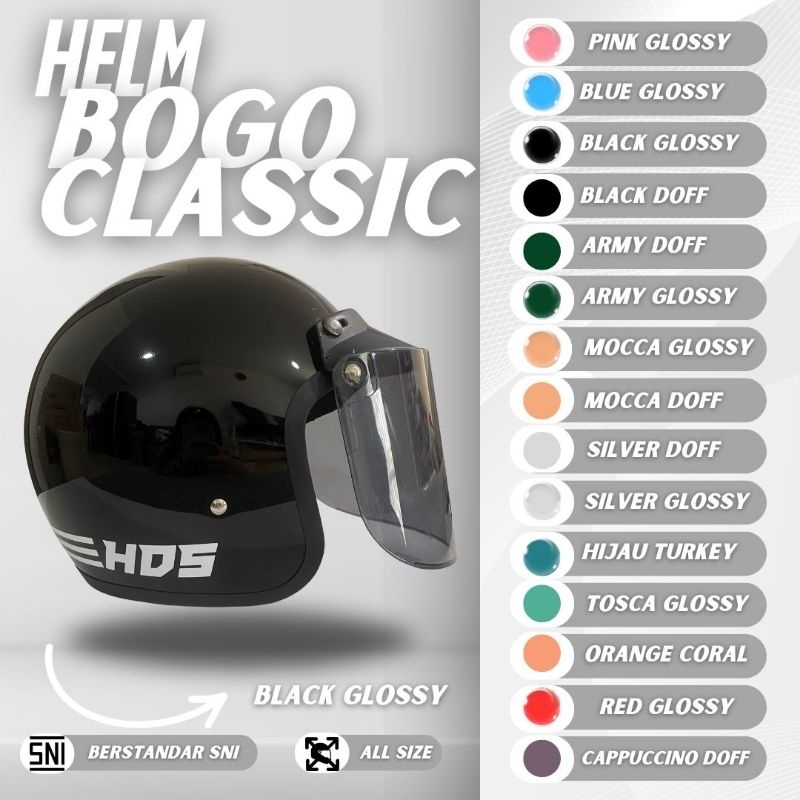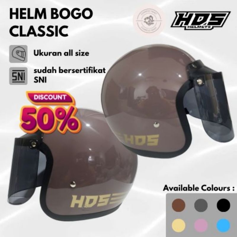 Helm Bogo Classic Dewasa HDS HELMET Wanita Pria SNI Retro Hijab Cewek Cowok Produk ORIGINAL BEST SELLER