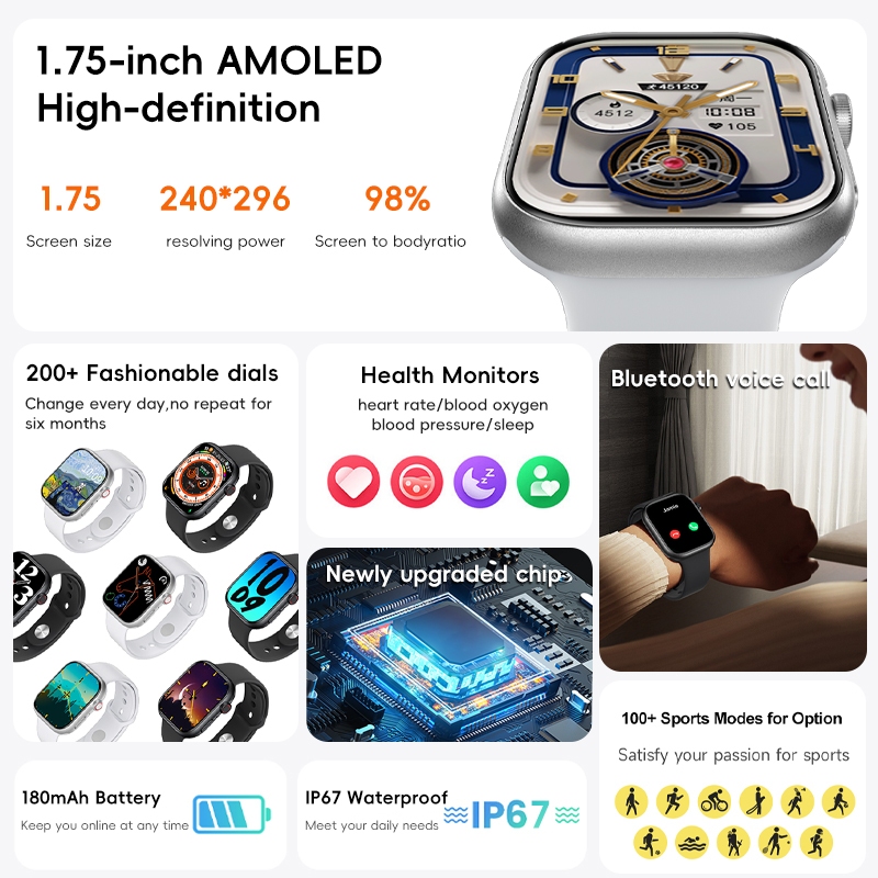 Smartwatch Mini Leemix S10 1.75" AMOLED - Slim - BT Calling - Sport Mode & Health Monitoring - Rich Application
