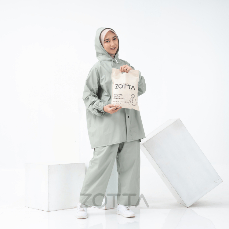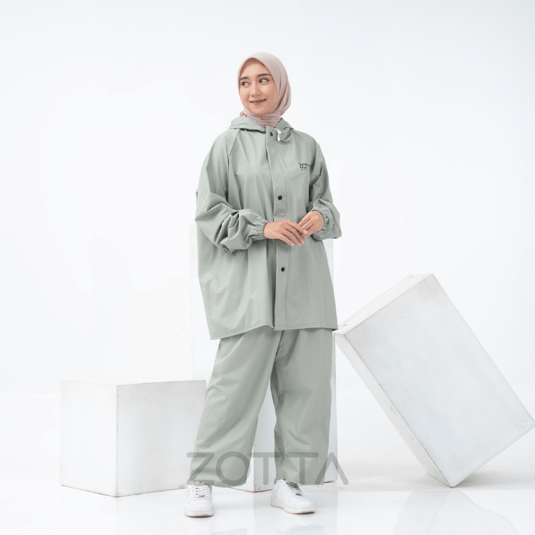 ZOTTA Jas Hujan Wanita Sage Green Lucu Aesthetic Stelan Celana Bahan ORIGINAL PREMIUM