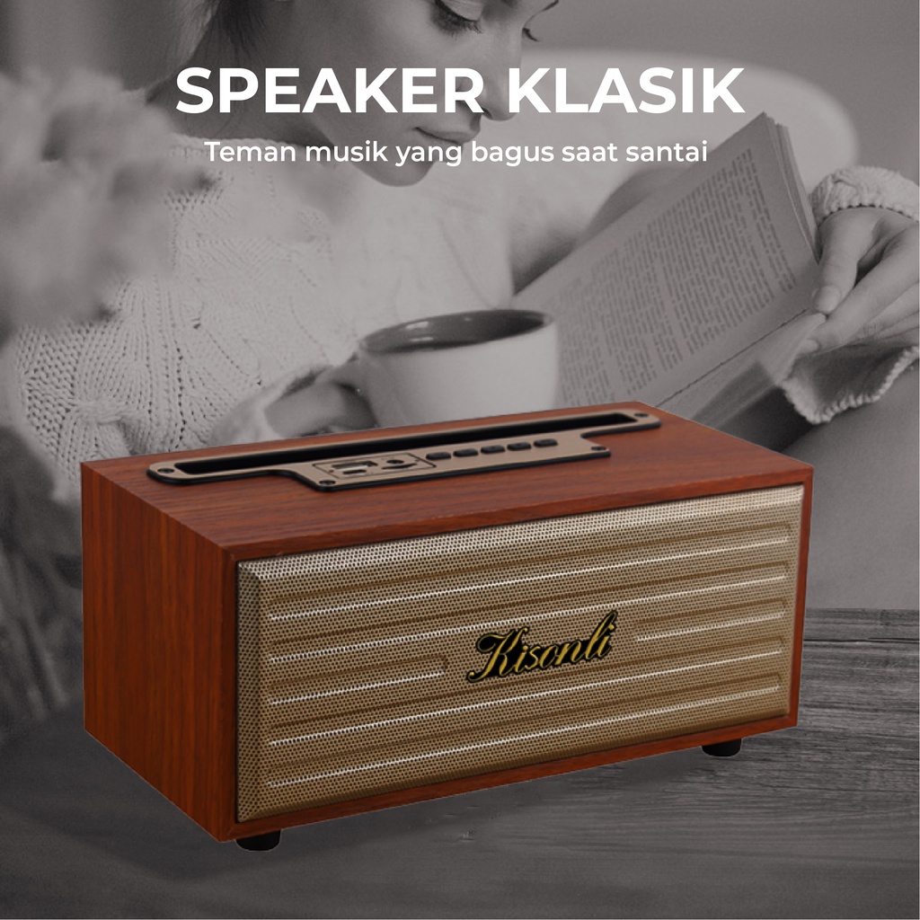 KISONLI - Speaker Bluetooth Portable Retro Klasik Wooden G-12A