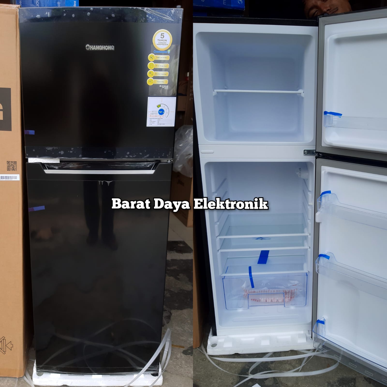 Kulkas Changhong 2 Pintu (Refrigerator) Lemari Es Kapasitas 150 Liter CRF208 - Black