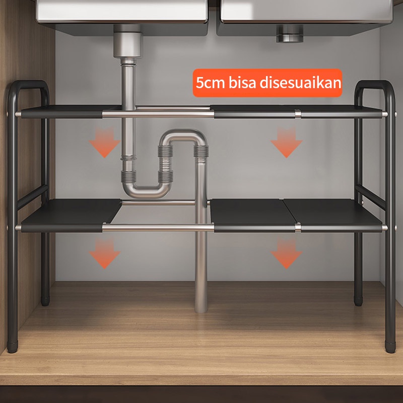 CICILAN TANPA DP Rak Penyimpanan Dapur Rak Penyimpanan Dapur Rak Serbaguna Dapur Bawah Sinki Stainless Steel yang Dapat