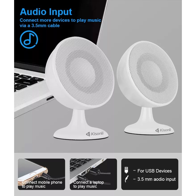 KISONLI Speaker Mini Komputer / Laptop S888-PUTIH Super Bass Effect With Volume Control