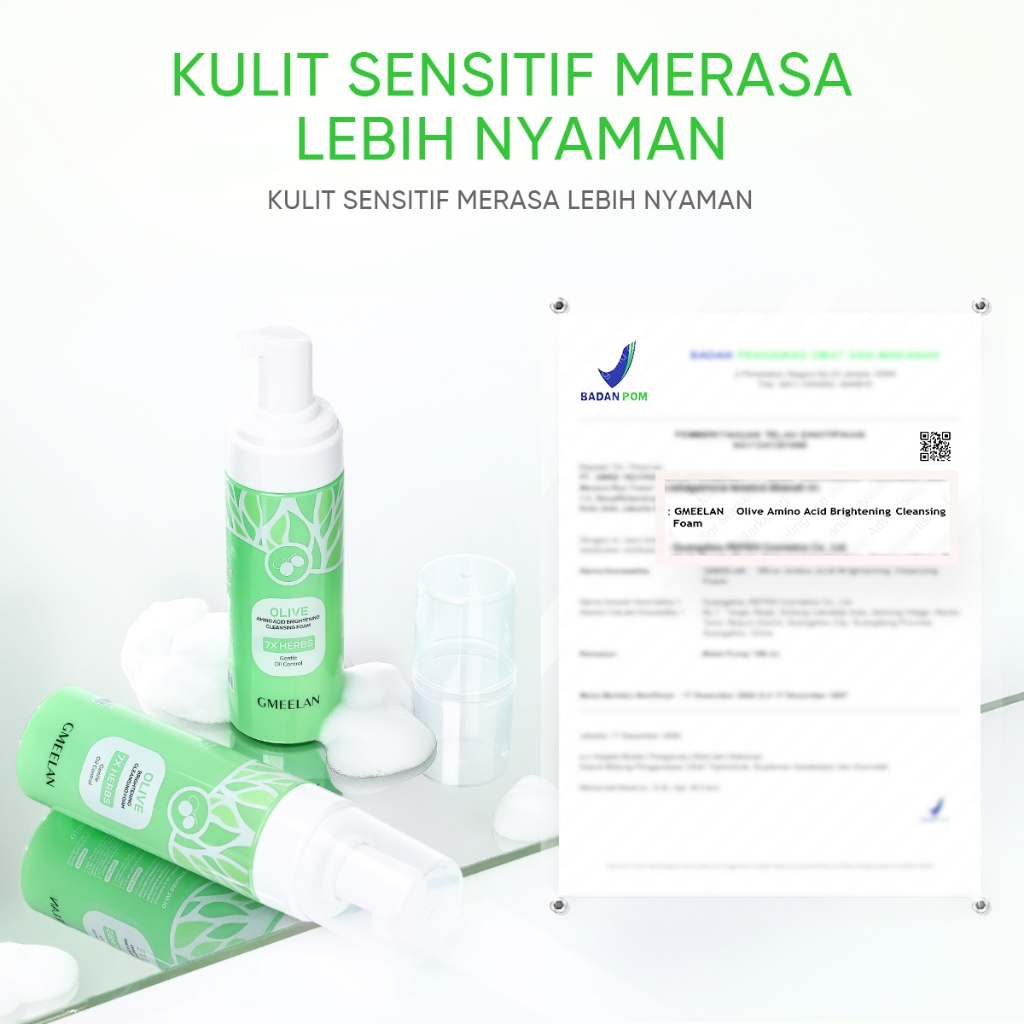 PEMBERSIH WAJAH GMEELAN SET OLIVE AMINO ACIDFOAM PENCUCI MENCERAHKAN 150ML LEMBUT BERSIH+SABUN PEMUTIH BADANEMAS 24K