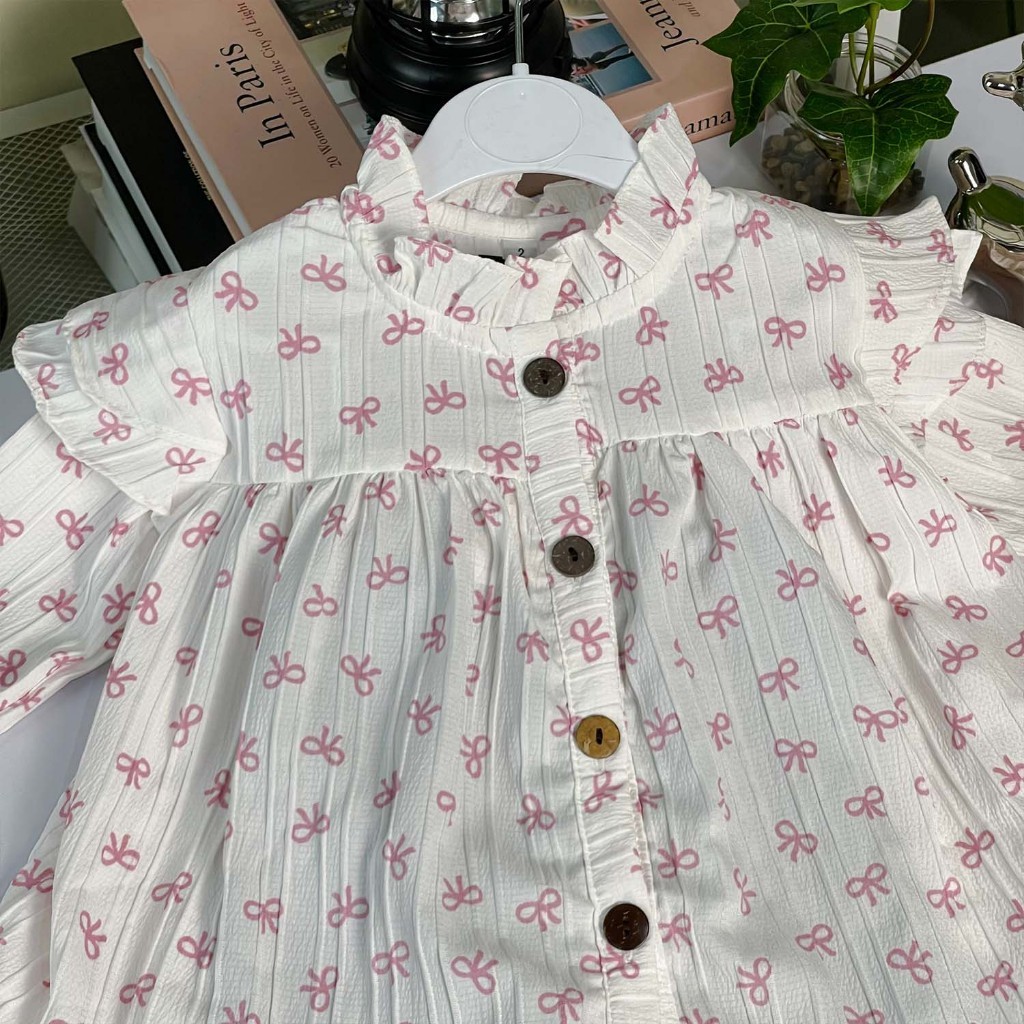NAKEISHA Pink Oneset Setelan Baju Anak Perempuan Lengan Panjang Motif Pita Bahan Crinkle Premium Casual Style Celana