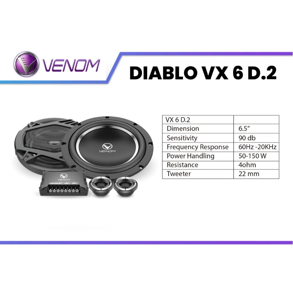 Speaker Split VX 6 D.2 Venom Diablo Series VX6D.2 Speaker Mobil 2 Way 6.5 Inch