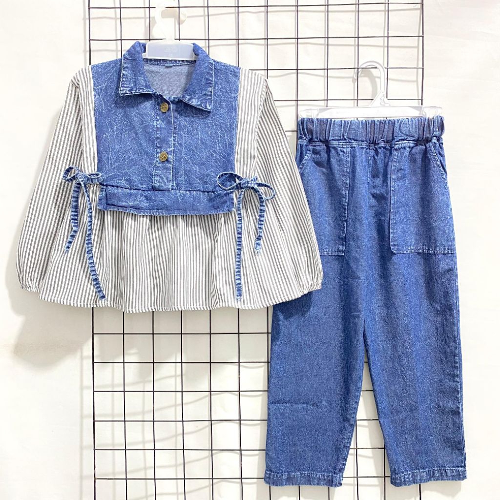 ONE SET TUNIK JEANS ANAK PEREMPUAN II SETELAN KEKINIAN MONICA ONE SET 3-10TAHUN