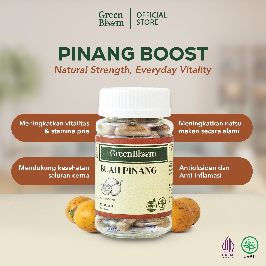 GreenBloom Buah Pinang - Vitalitas Pria, Pencernaan, Nafsu Makan | Obat Herbal Jamu Kapsul Alami