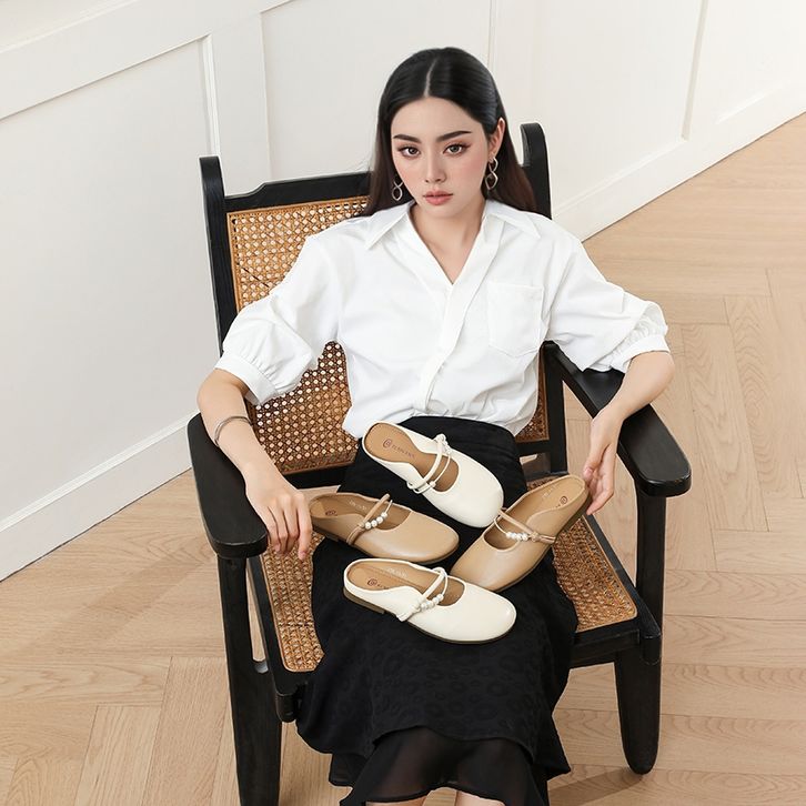 SEPATU FLAT WANITA SANDAL MULES SLIP ON KASUAL JEPANG BY IKUNKA TERLARIS
