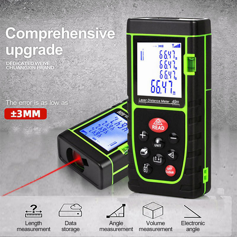 Alat Ukur Jarak Laser Portabel 40M Akurasi Tinggi Tahan Air IP54 - Hijau