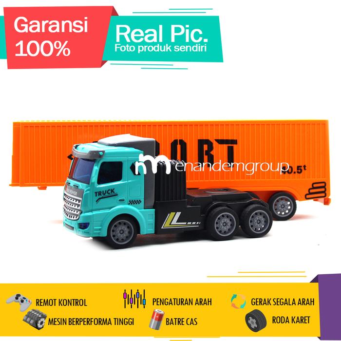 Mainan Mobil Remot Kontrol RC Truk Kontainer Gandeng Trailer Cargo Batre Cas