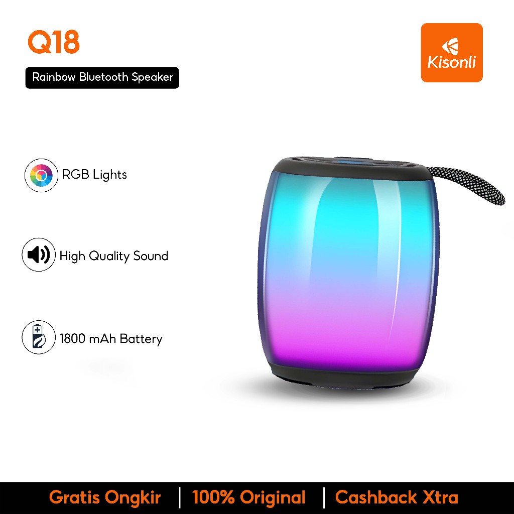 KISONLI Speaker Bluetooth Pelangi RGB Party 5.3 Portable Q18 Sound Quality Stereo