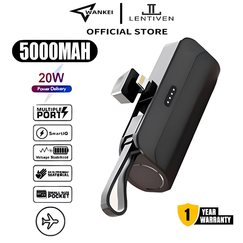 CICILAN TANPA DP WANKEI LENTIVEN Powerbank Mini 5000 mAh Fast Charging For IOS TYPE C KC88