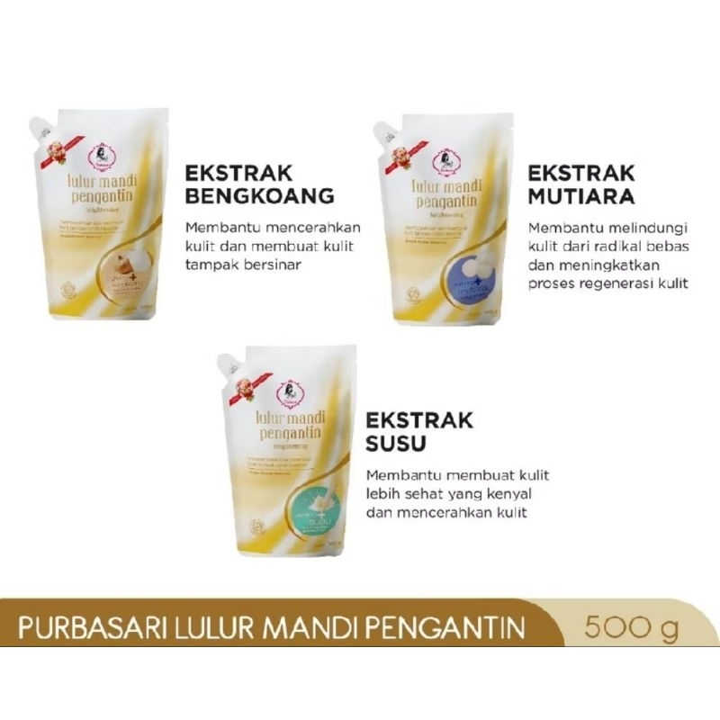 OliveShop ❤️ Purbasari Lulur Mandi Pengantin Susu Bengkoang Mutiara Pouch 500gr 1kg