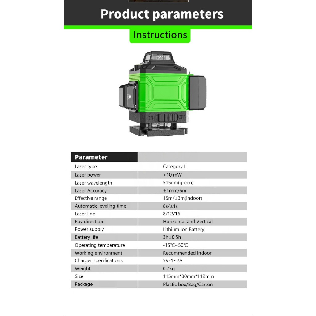 laser level bangunan waterpass laser multifungsi meteran laser level hilda 4d 12line Tingkat bosch waterpass laser pas