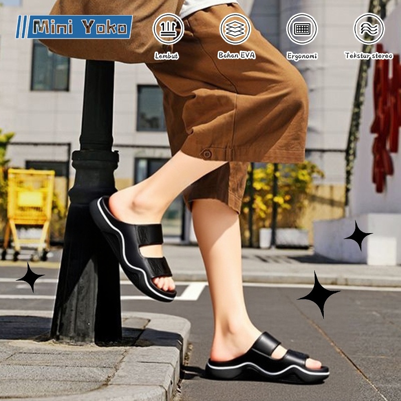 Sandal Pria Karet Anti Slip Tebal Outdoor Berkualitas Awet Kasual Ringan Sepatu Sendal Cowok Kekinian 2025 Distro Empuk