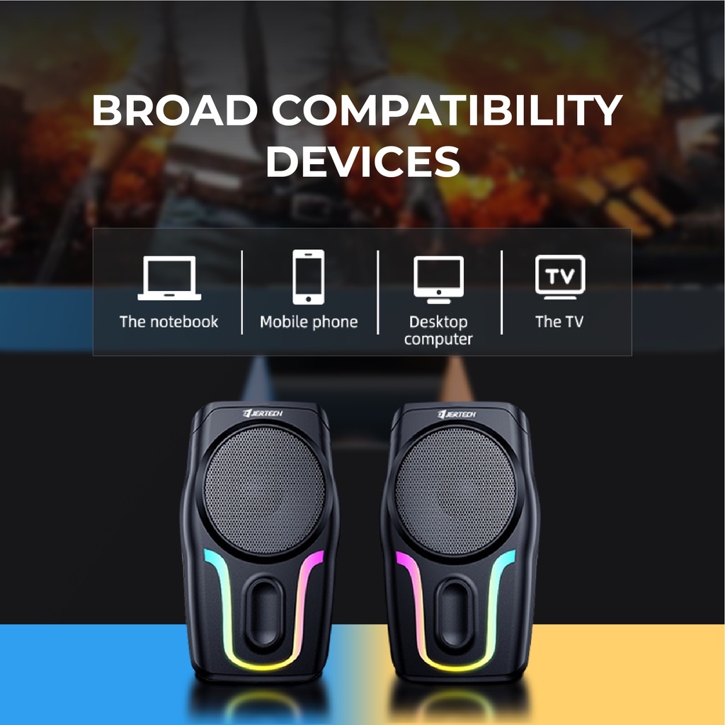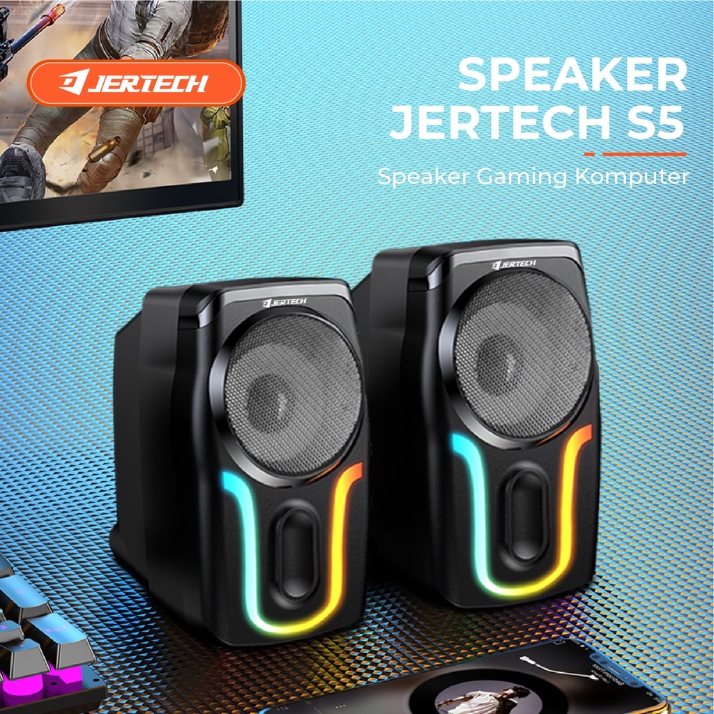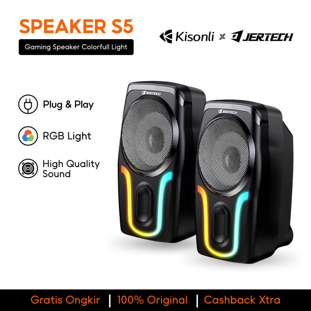 KISONLI x JERTECH Speaker Gaming Kabel Usb Komputer Laptop S5 RGB Light With Audio Output