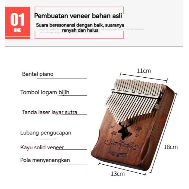 () Kalimba 21 Key Piano Jari Alat Musik Finger Piano Kunci Musical Thumb Piano Kayu Alat Musik Pemula Paket Lengkap Mura
