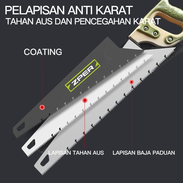 [Star] ZPER Gergaji Potong Kayu Gorok 18 Inch Paku Saw Hand Saw Heavy Duty Wood Saw ZP021 ZP022