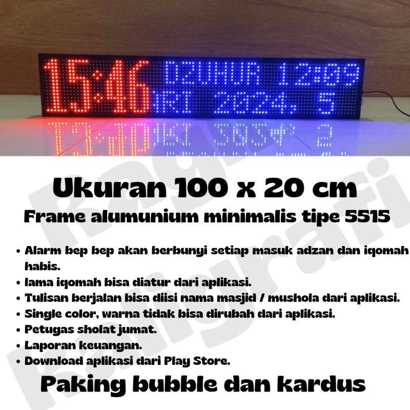 Jam waktu sholat - Jam shalat masjid - Jam jadwal shalat - Jam sholat digital - Jam masjid digital 100 x 20cm - Thm9