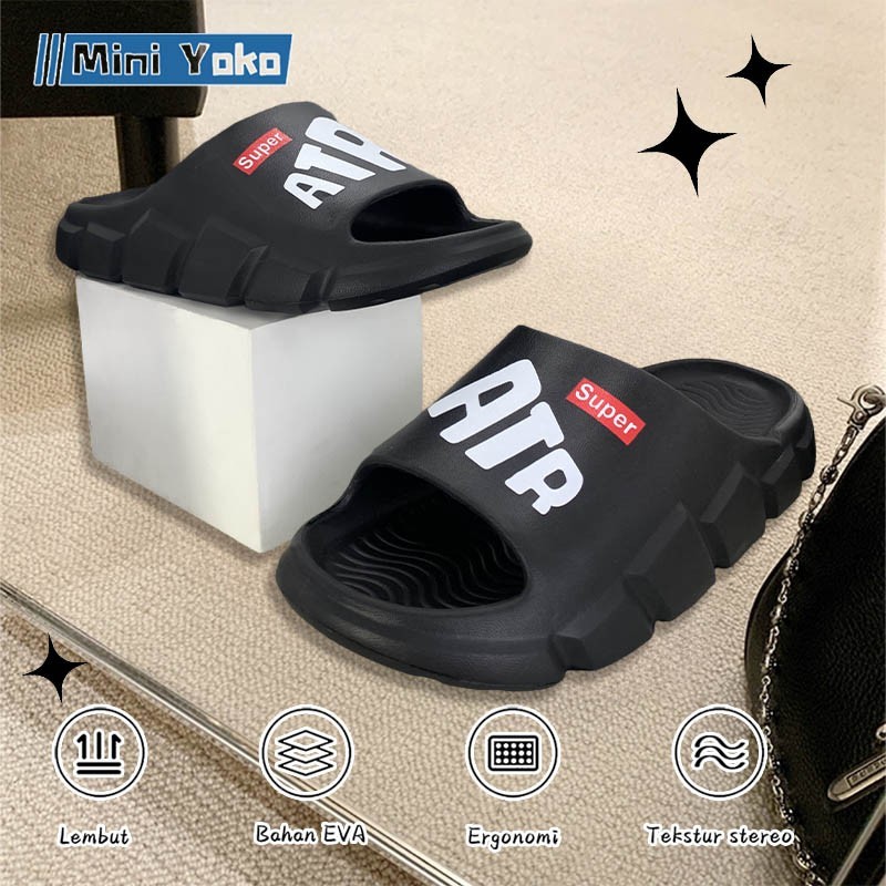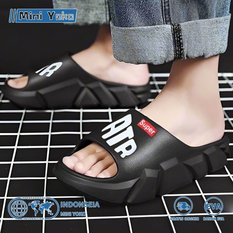 Sandal Slop Pria Tebal Tinggi 4Cm Keren Casual Karet Eva Sendal Cowok Kekinian 2025 Distro Slip On Murah Fashion Flat
