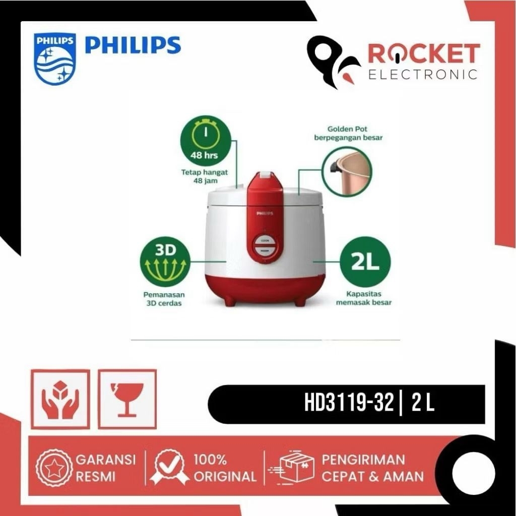 Rice cooker/magic com philips hd3119-penanak nasi-2liter