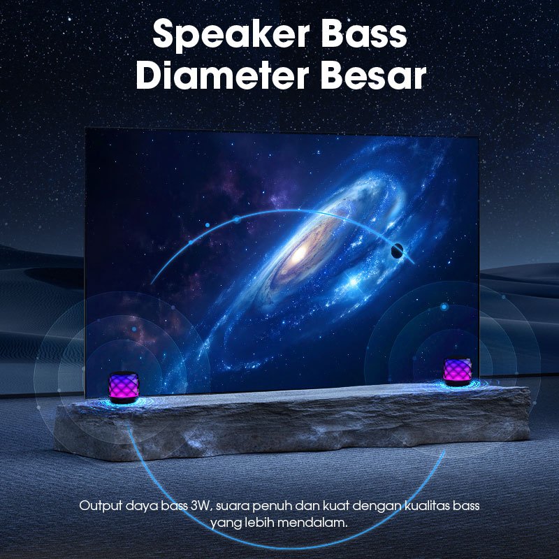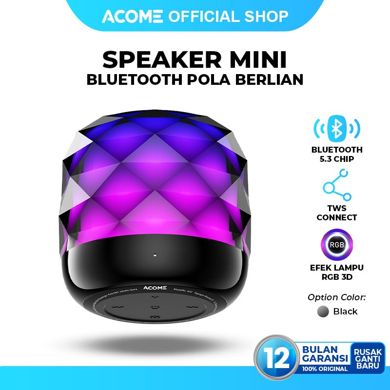ACOME Super Bass Mini Speaker Bluetooth 5.3 Pola Berlian RGB LED Lampu Light Crystal 360° TWS Connect Portable A22 - Gar