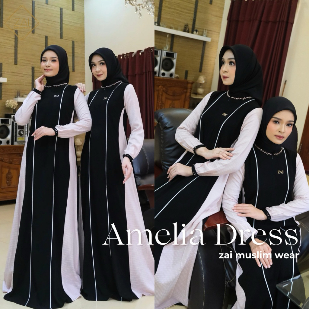 Terlaris Amelia Dress Original By Zai Muslim Wear Jetblack Premium S-XXL