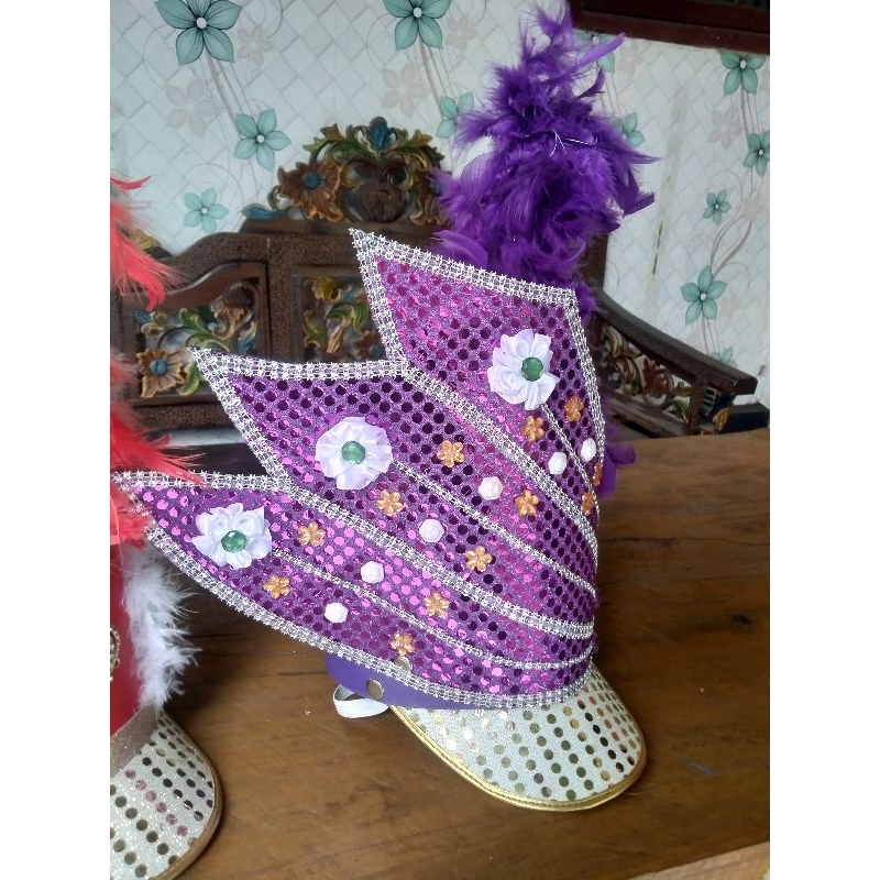 topi mayor ungu polka tanduk/topi drumband