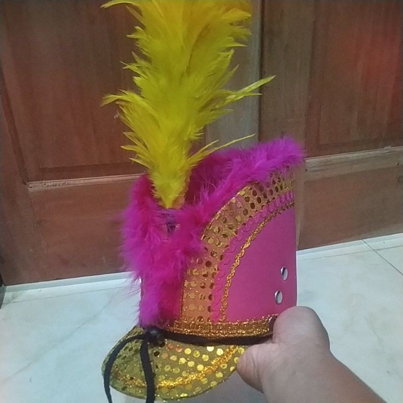 Topi Mayoret TK Biruputih silver dan bulu hias ( Bisa Request el , Warna dan ukuran )
