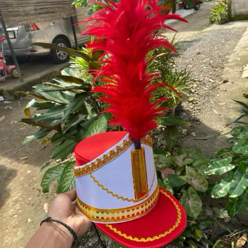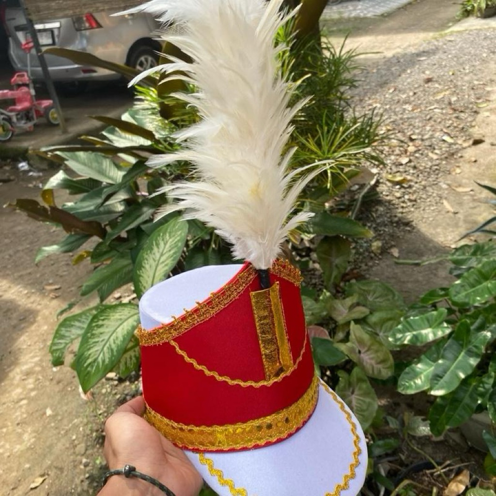 Topi pasukan drumband + bulu bisa request warna dan ukuran paud sampai sma