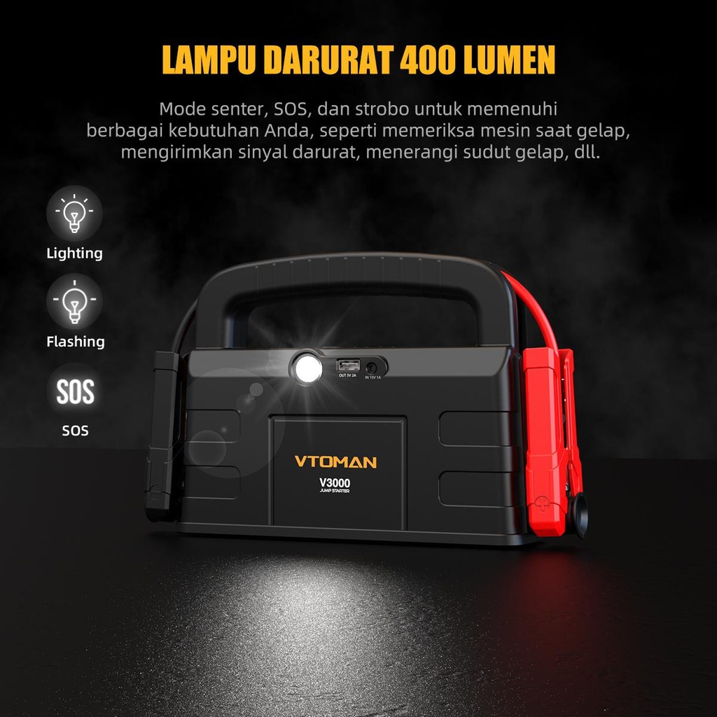 VTOMAN V3000 Jumper Aki 12000mAh 12V Powerbank Jumper Aki Mobil Dan Motor Car Jump Starter Multifungsi Power Bank Mobil
