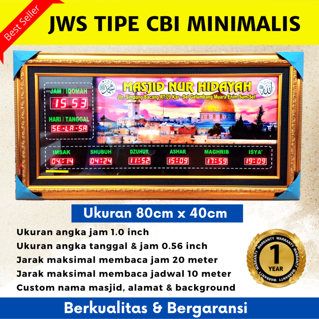 Jam waktu sholat - Jam shalat masjid - Jam jadwal shalat - Jam sholat digital - Jam masjid digital - Uk 40x80 cm - Thm10