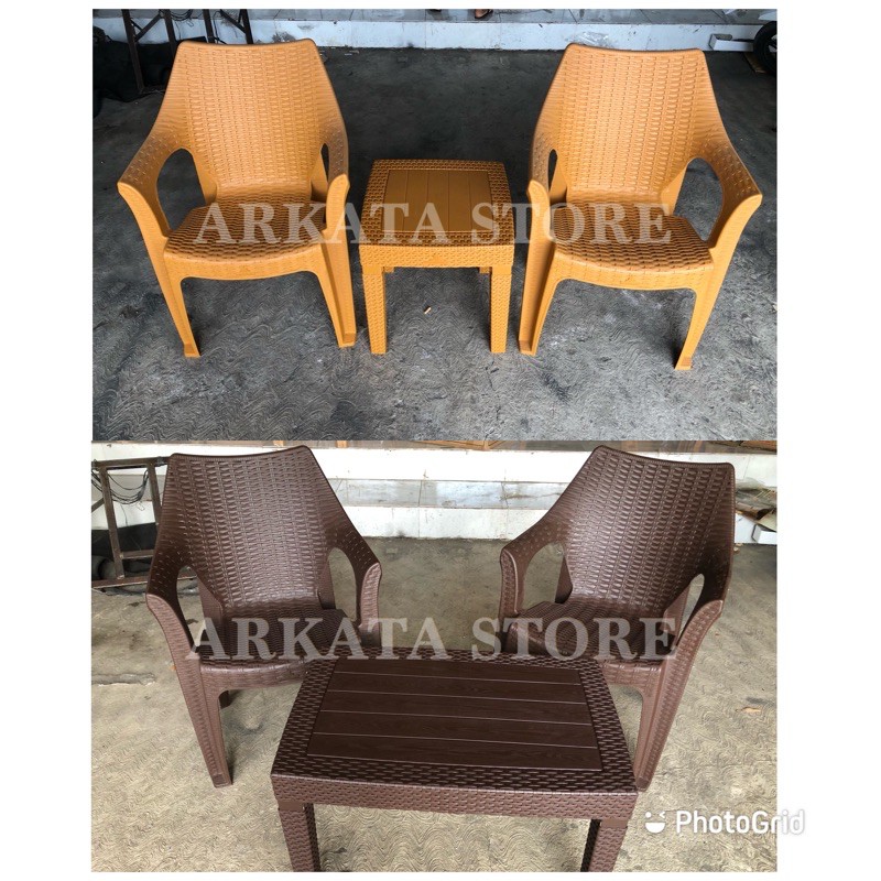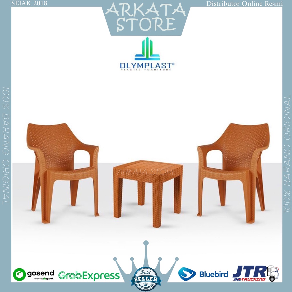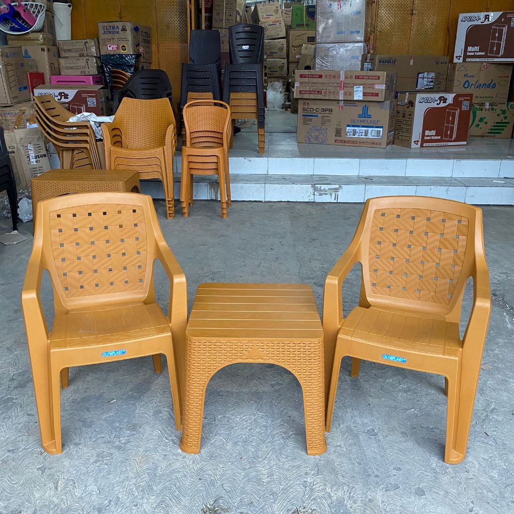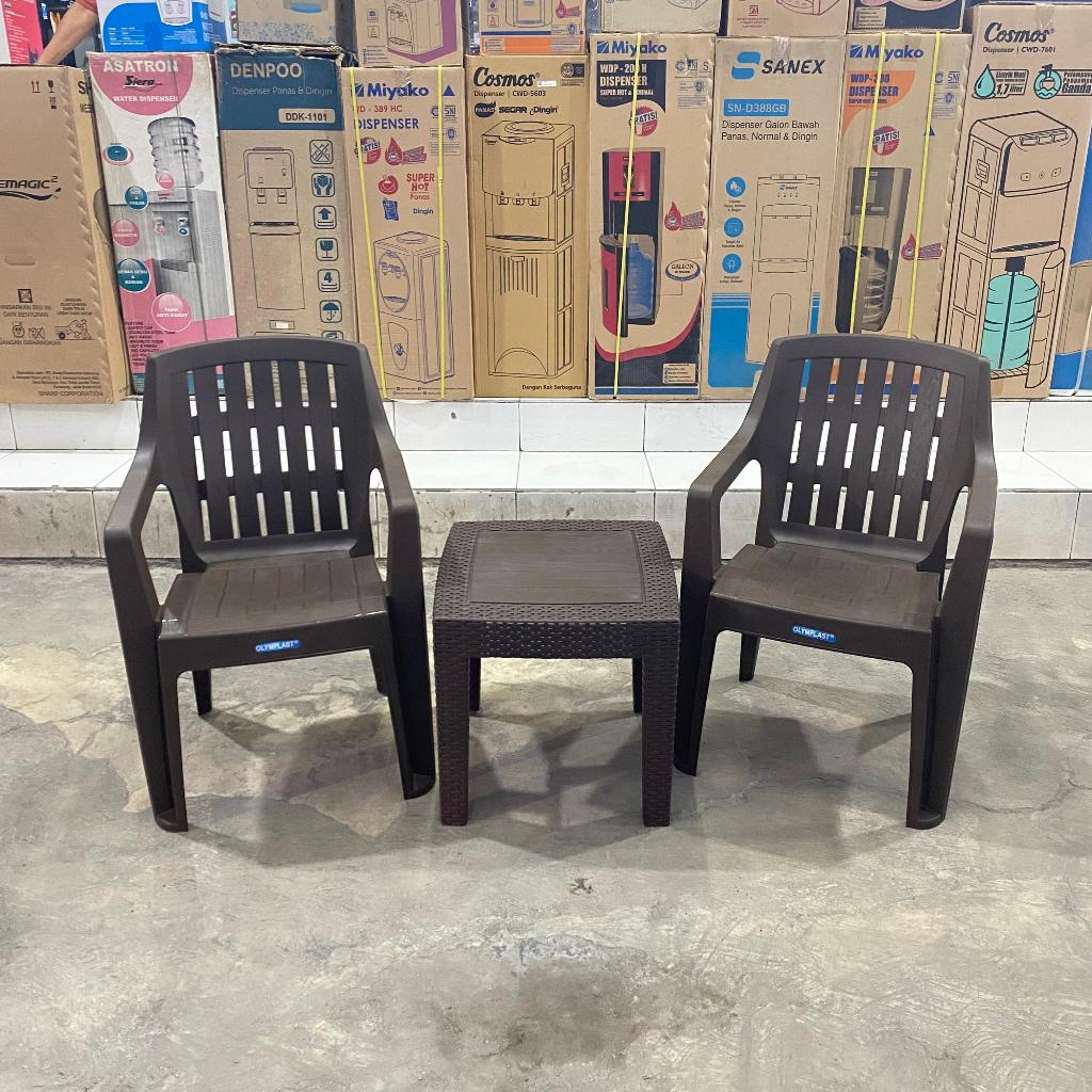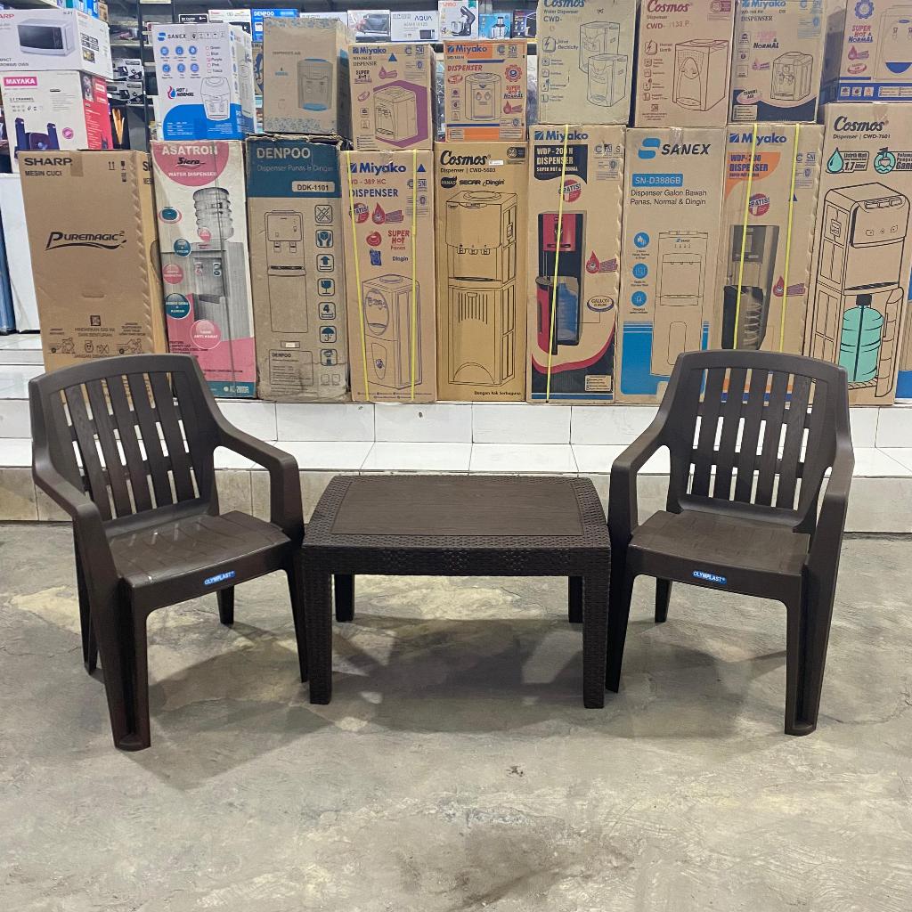 Kursi Teras 1 Set 2 Kursi Teras Santai Anyaman Plastik Olymplast OL 508 + Meja OCT-R Olymplast Kursi Tamu Set Meja