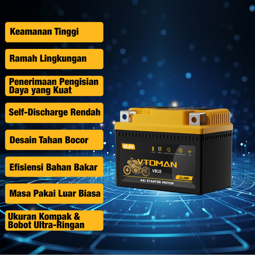 VTOMAN VB10 Aki Baterai Motor 12V Aki Starter Motor Aki Kering, cocok untuk motor 100cc-125cc, Aki Kering Motor