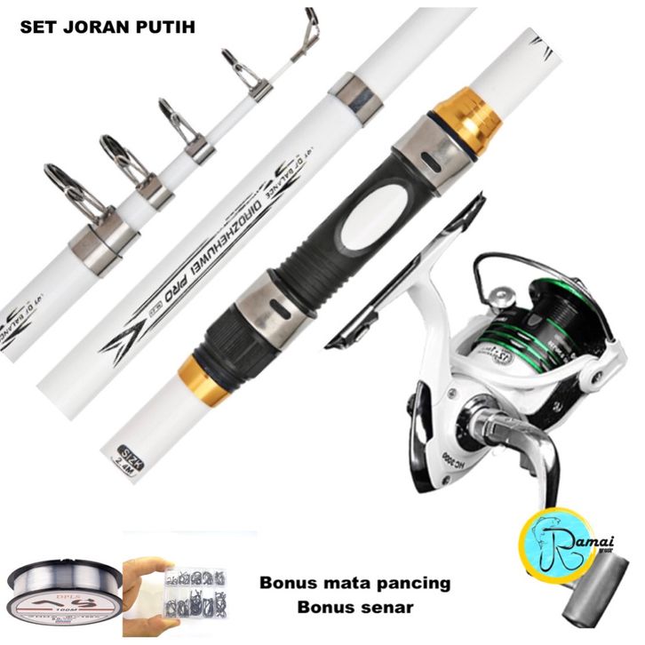KAGAWA FISHING SATU SET JORAN PREMIUM SPINNING WARNA PUTIH REEL BAHAN METAL PUTIH ONE WAY PREMIUM DRAG UP TO 5 KG