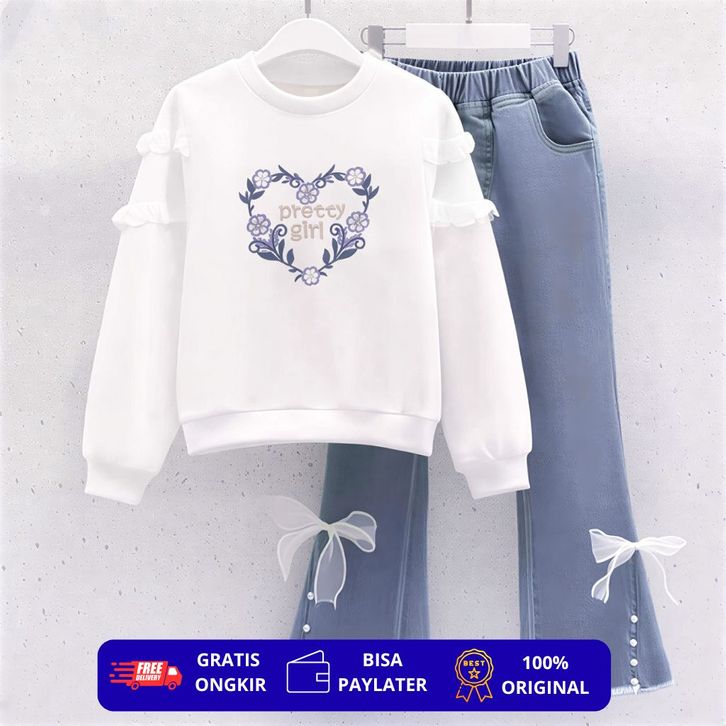 STELAN SWEATER DAN CELANA JEANS ANAK PEREMPUAN USIA 1-10 TAHUN STELAN SWEATER ANAK IMPORT