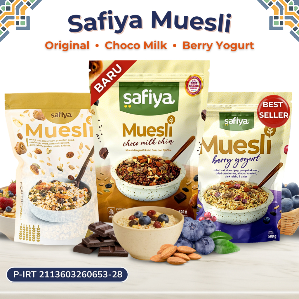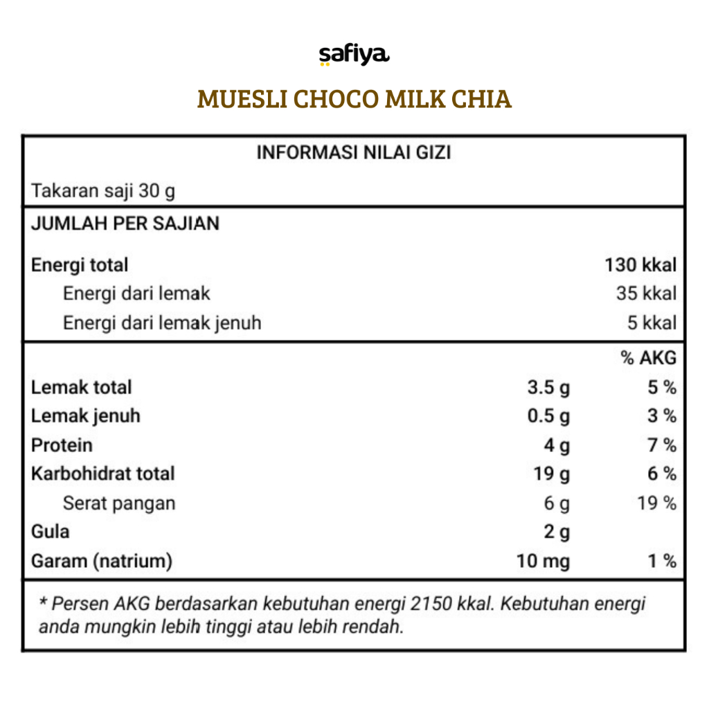 Muesli Choco Milk Chia 840 Gr Safiya Oatmeal Dried Fruit Almond Sereal Sarapan Sehat Premium