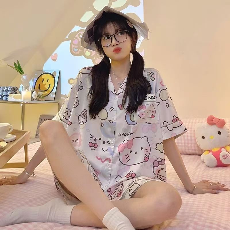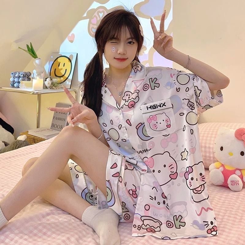 Setelan Tidur Wanita - Sutra Es Nyaman, Pendek Lengan Celana Pendek, Desain Populer, Harga Terjangkau/daster/baju tidur
