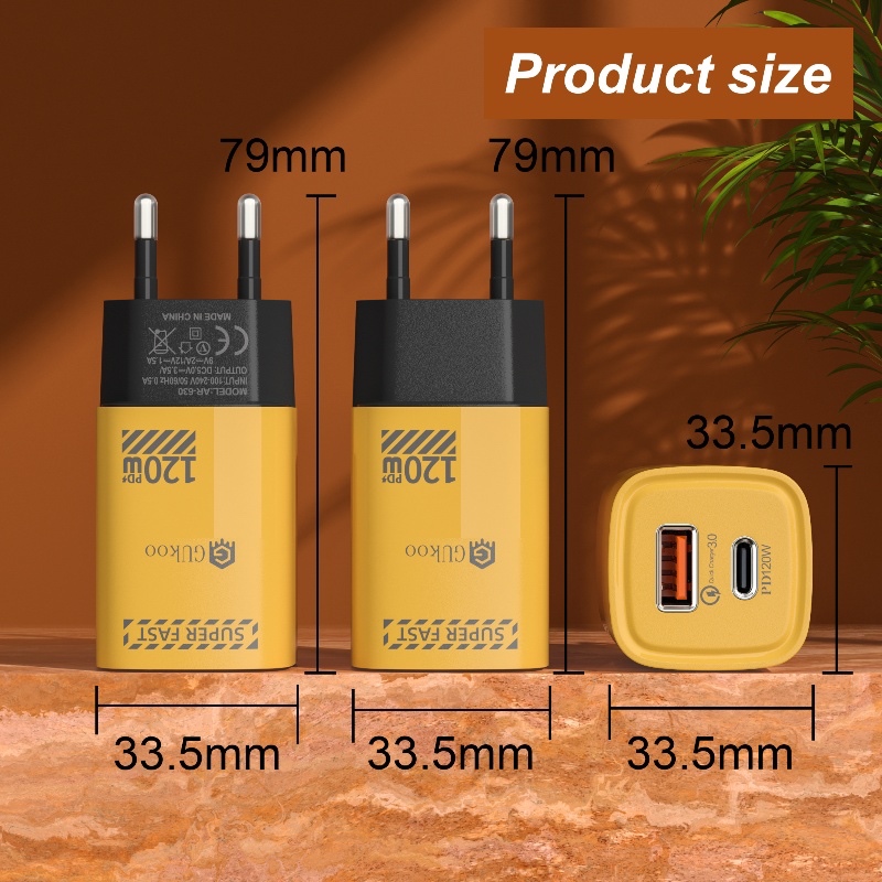 [Mall]Charger 120W PORTABLE - Dual Port USB/Type-C, Isi Daya 2 Perangkat Sekaligus Anti Panas & Aman